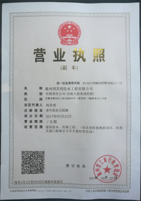 ★ 您好,您正在訪問的是 滁州防水|滁州防水堵漏|滁州周其明建筑防水工程有限公司 官方網站!如有疑問請撥打熱線: